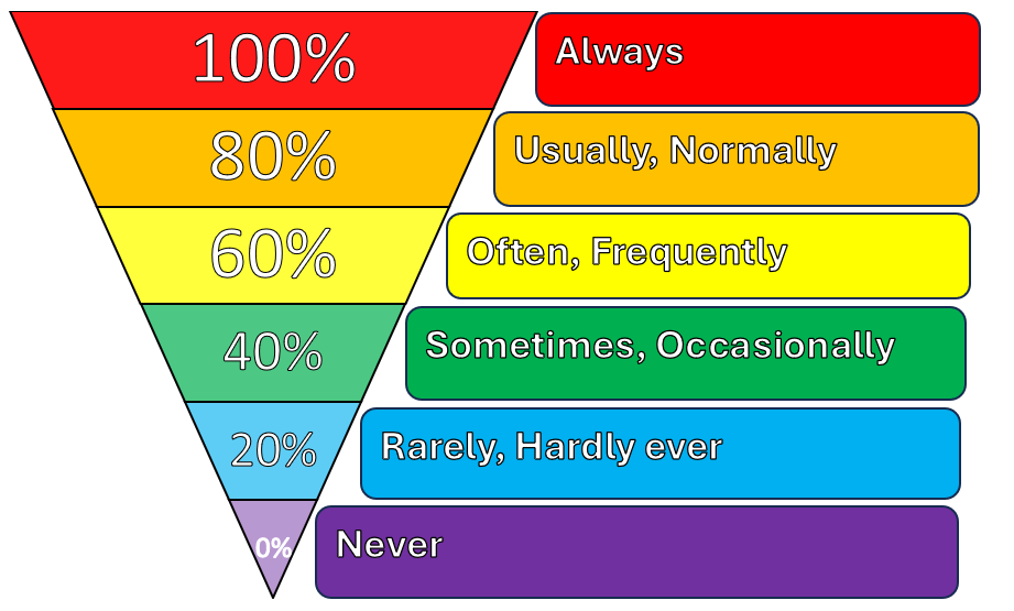 Adverbs of frequency talk about HOW OFTEN we do things, or things happen. Here is a general outline of some adverbs of frequency.