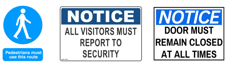 Must is used for formal rules, laws and procedures. We often see it on signs.
